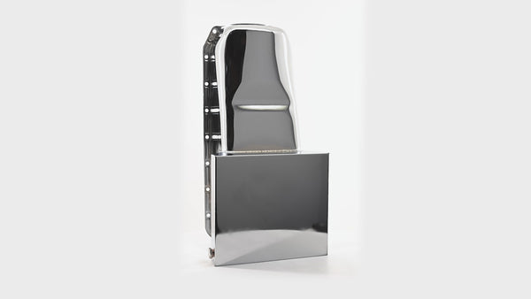 CFR Performance Compatible/Replacement Steel Oil Pan – 1958-79 Chevy Small Block 283-305-327-350-400 Racing 7QT – Chrome