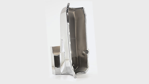 Upgrade your engine’s performance and visual appeal with this CFR Performance chrome racing oil pan—a perfect addition for any classic Chevy small block build.