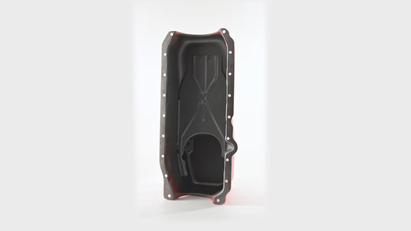 Upgrade your Chevy small block engine with this CFR Performance steel oil pan, designed to fit 1986-2002 Chevy 305, 327, and 350 V8 engines. This painted orange steel oil pan provides a 4-quart (stock) capacity and features a rear sump design ideal for many late-model small block applications. Engineered to fit engines with a one-piece rear main seal, this oil pan places the dipstick on the passenger side for easy access. The oil pan is baffled to help maintain proper oil control under all driving conditions.