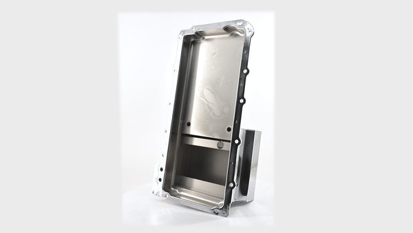Depth: 6" deep pan with trap-door baffling to improve oil control during acceleration, cornering, and braking.