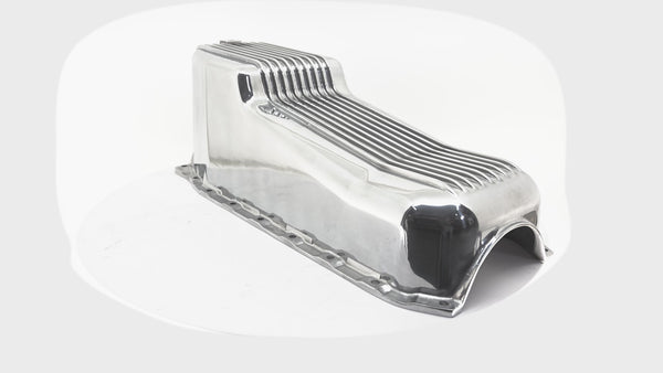 ALUMINUM 1980-85 CHEVY SB 262-400 STOCK CAPACITY OIL PAN - RETRO POLISHED FINNED BAFFLED - POLISHED